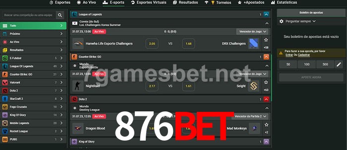 A aposta 876bet oferece aos jogadores a experiência mais conveniente de apostas em eSports!
